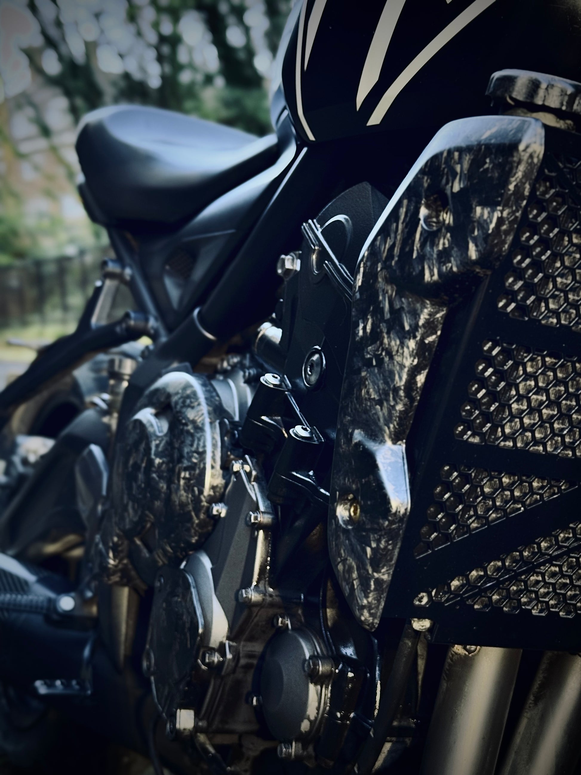 Give your Trident a race-inspired edge with these stunning forged carbon radiator cowls – the perfect upgrade for riders who value both style and quality.